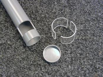 Een pvc buis 40 mm, een afsluit deksel 40 mm en een plexiglas buis 40mm. Zaag in de pvc buis een gat, ongeveer 3cm vanaf de bodem. Zaag daarna de plexiglas buis in twee gelijke delen. Maak met een haarfohn het plexiglas heet, en leg hem over de