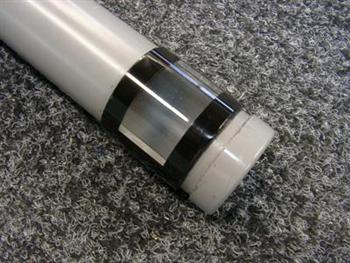 Hier een totaalbeeld van de onderwater camera. Hij is van 40mm pvc buis vervaardigd, er zijn geen speciale materialen of gereedschappen nodig en is simpel om te maken. De camera en zender zijn op marktplaats te koop voor rond de 50 euro. Ze worden ook wel minicamera of pinhole camera genoemd. Wij gebruiken in dit voorbeeld de op één na kleinste uitvoering, met een lensopening van 6mm. De kleinste camera met een lens opening van 2mm is ongeschikt, omdat deze niet genoeg licht opvangt, en dus een donker beeld zal geven
