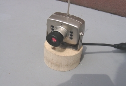 Aan het voetstuk bevestigen we een 2mm draad eind of iets vergelijkbaars, zodat we de camera kunnen draaien. Voor buiten gebruik moet je bovenaan een 180 graden bocht monteren tegen het in- regenen