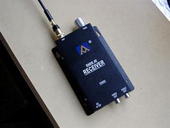 Hier de ontvanger die aangesloten moet worden op pc of tv. De camera en de ontvanger werken beide op 9 volt. Je kunt dus een batterij of adapter gebruiken.